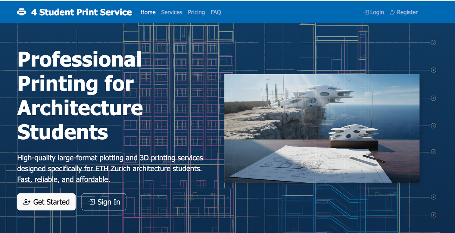 4 Students Print Service bietet Architekturstudierenden professionelles Plotten und 3D-Druck. Besonders innovativ ist die KI-gestützte Analyse von PDF-Architekturplänen: Bedruckte Flächen werden exakt erkannt, wodurch der Farbverbrauch präzise kalkuliert werden kann. So lässt sich der Druckpreis transparent und fair bestimmen.